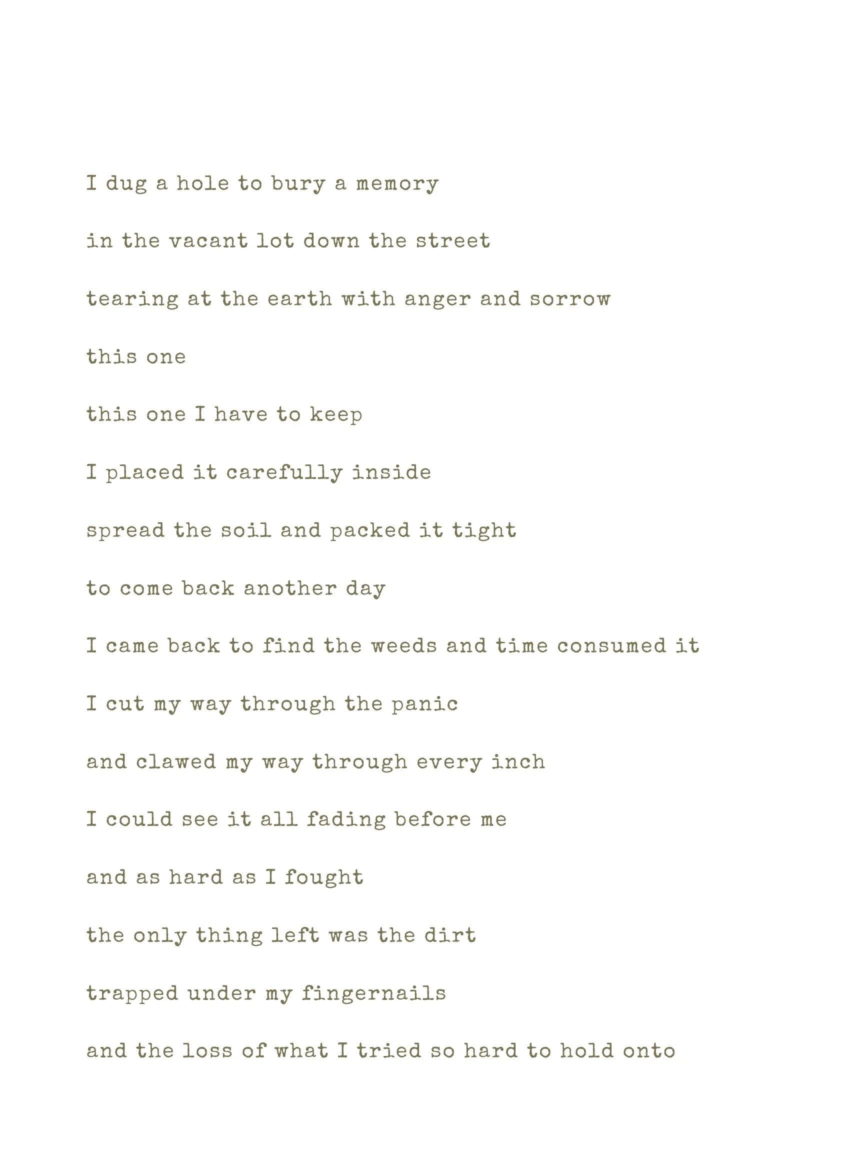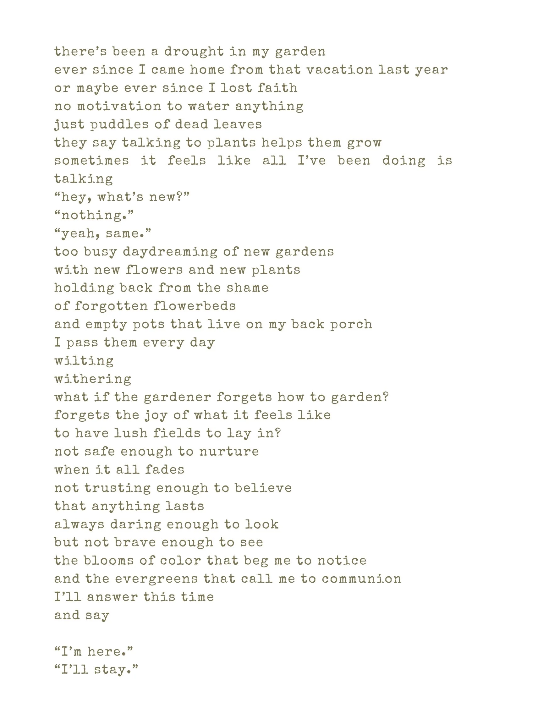 A page of typed poem about gardening, drought, and nature.