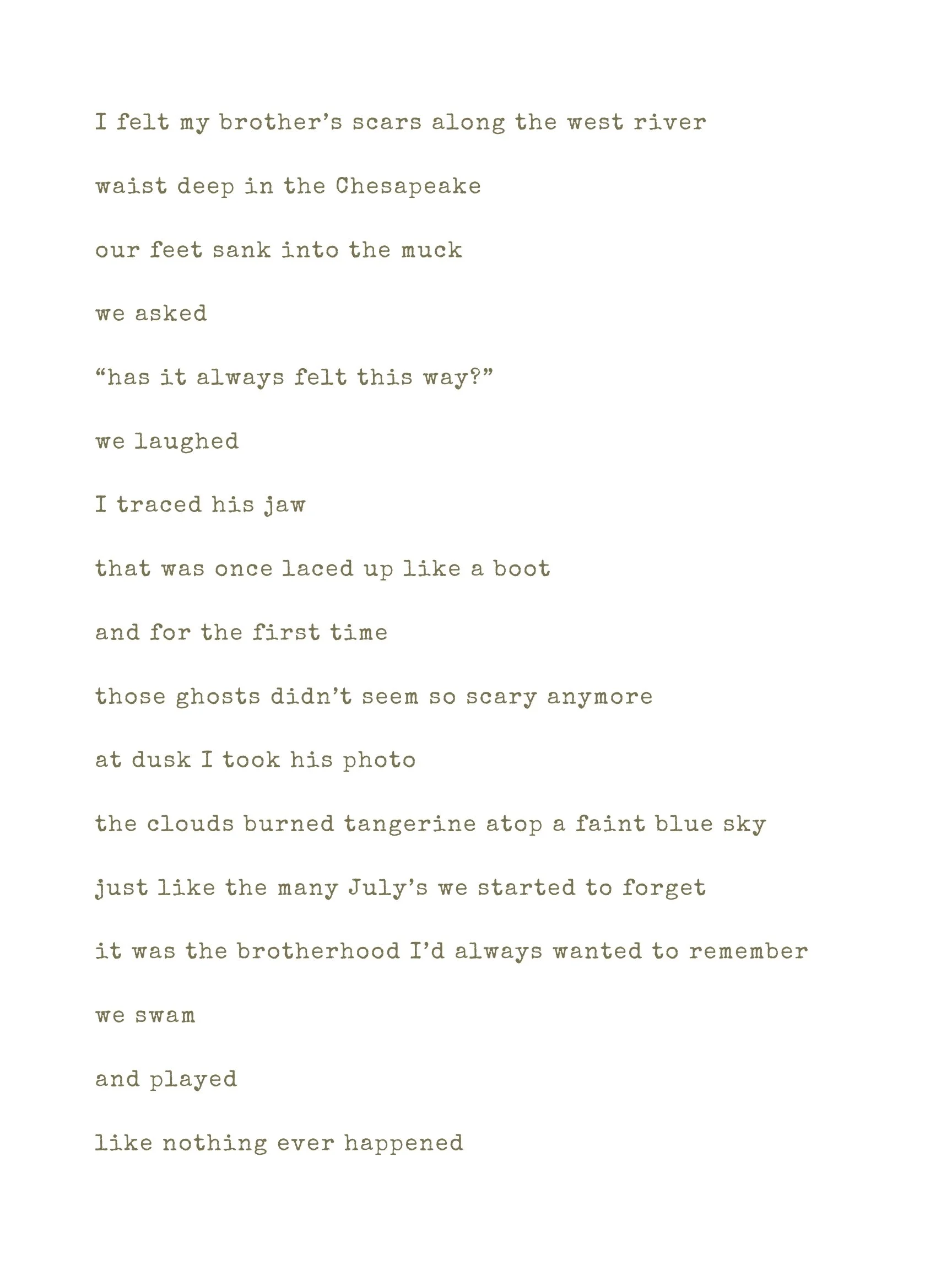 A poetic page of text with stanzas about childhood, brotherhood, and memories by a river during summer.